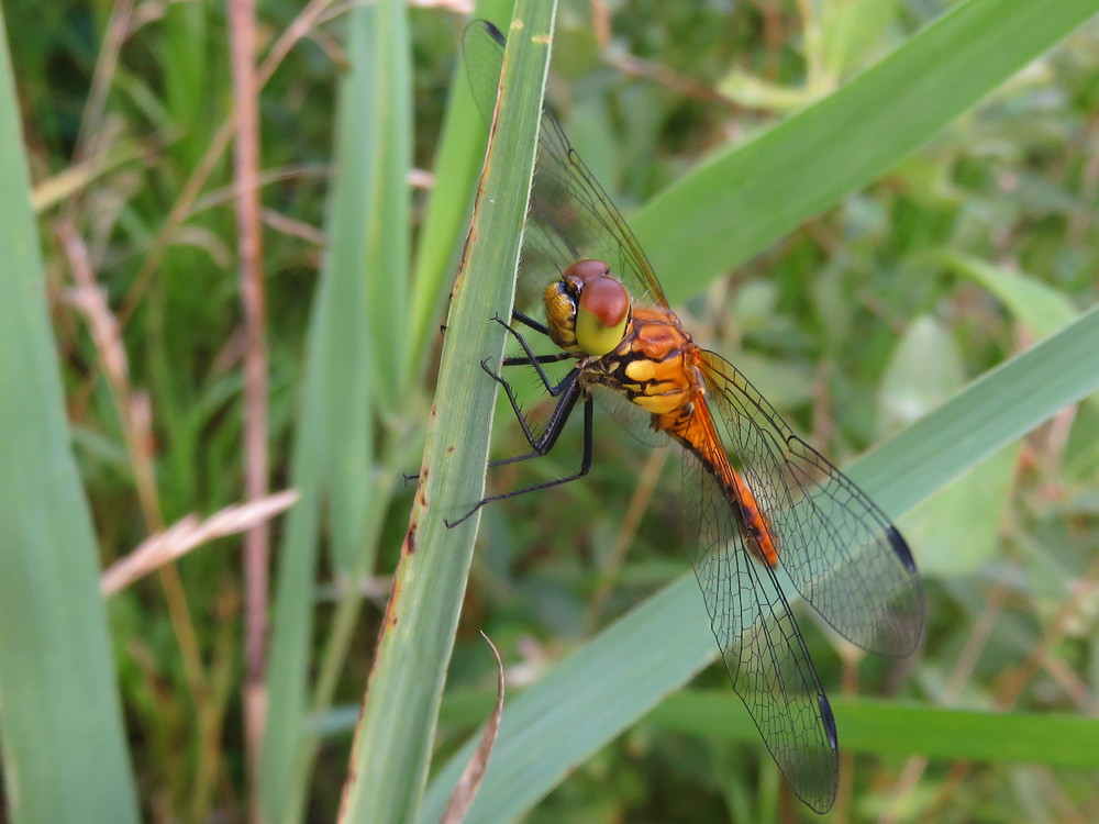 (de Geelvlekheidelibel heeft een veel grotere oranje vlek in de vleugels)