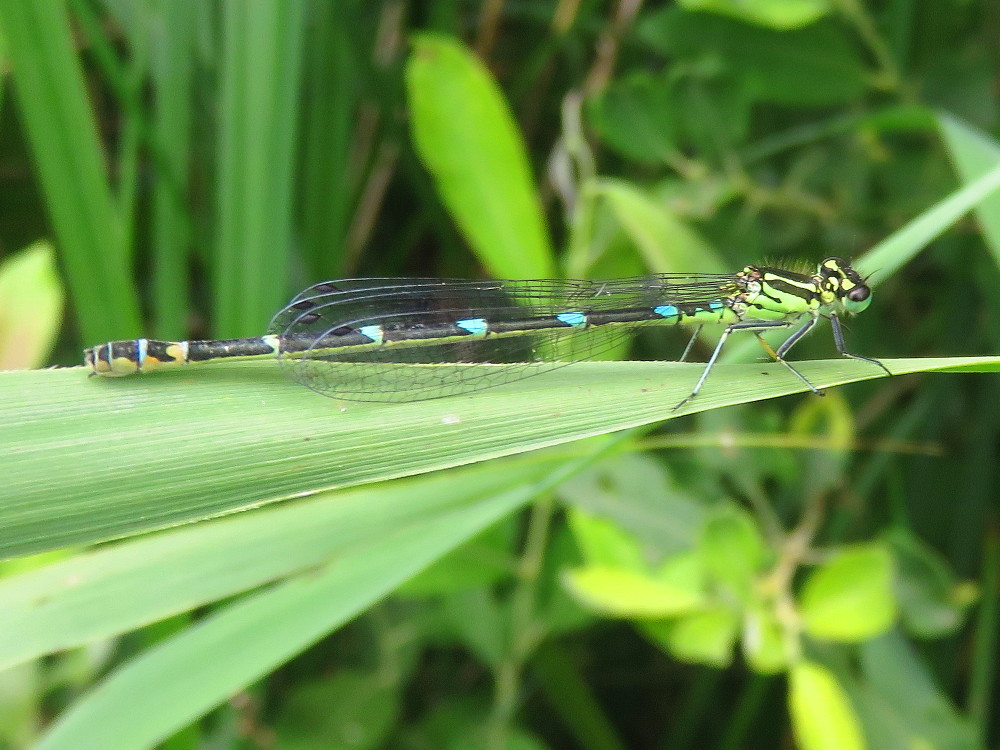 (het halsschild van de Azuurwaterjuffer heeft de vorm van een accolade) - Achterlijf: