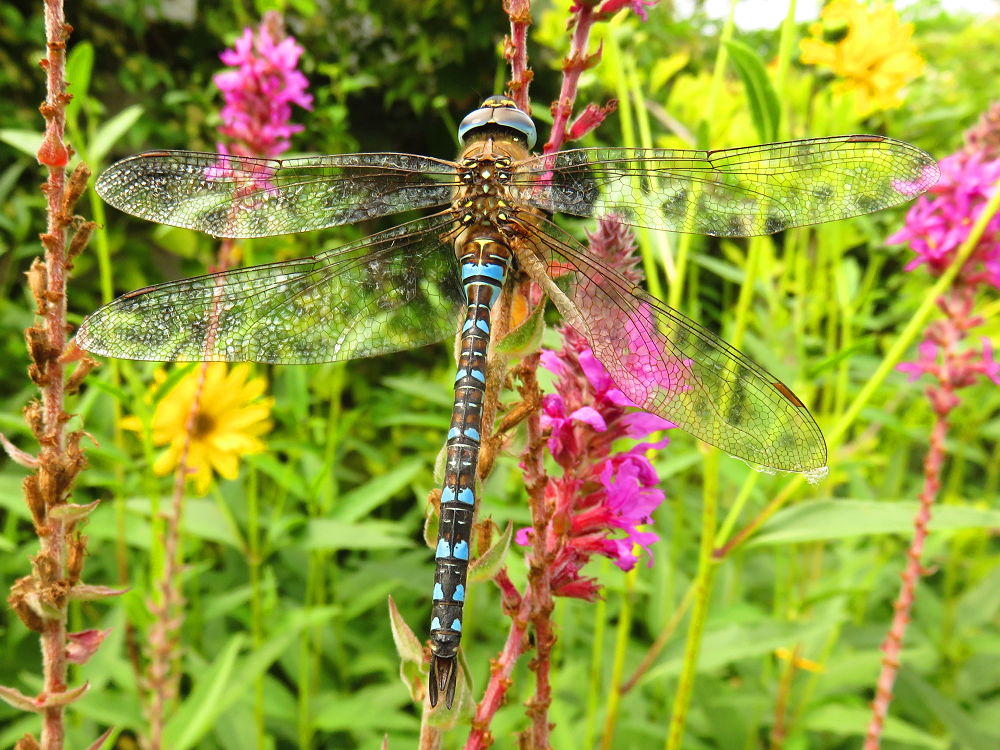 De Paardenbijter is een libel die vooral aan het eind van de zomer te zien is. In onze tuin kom ik hem elk jaar wel tegen. Vandaag kwam dit mannetje langs, die zich geduldig liet fotograferen. Een mooie blauw met gele libel.