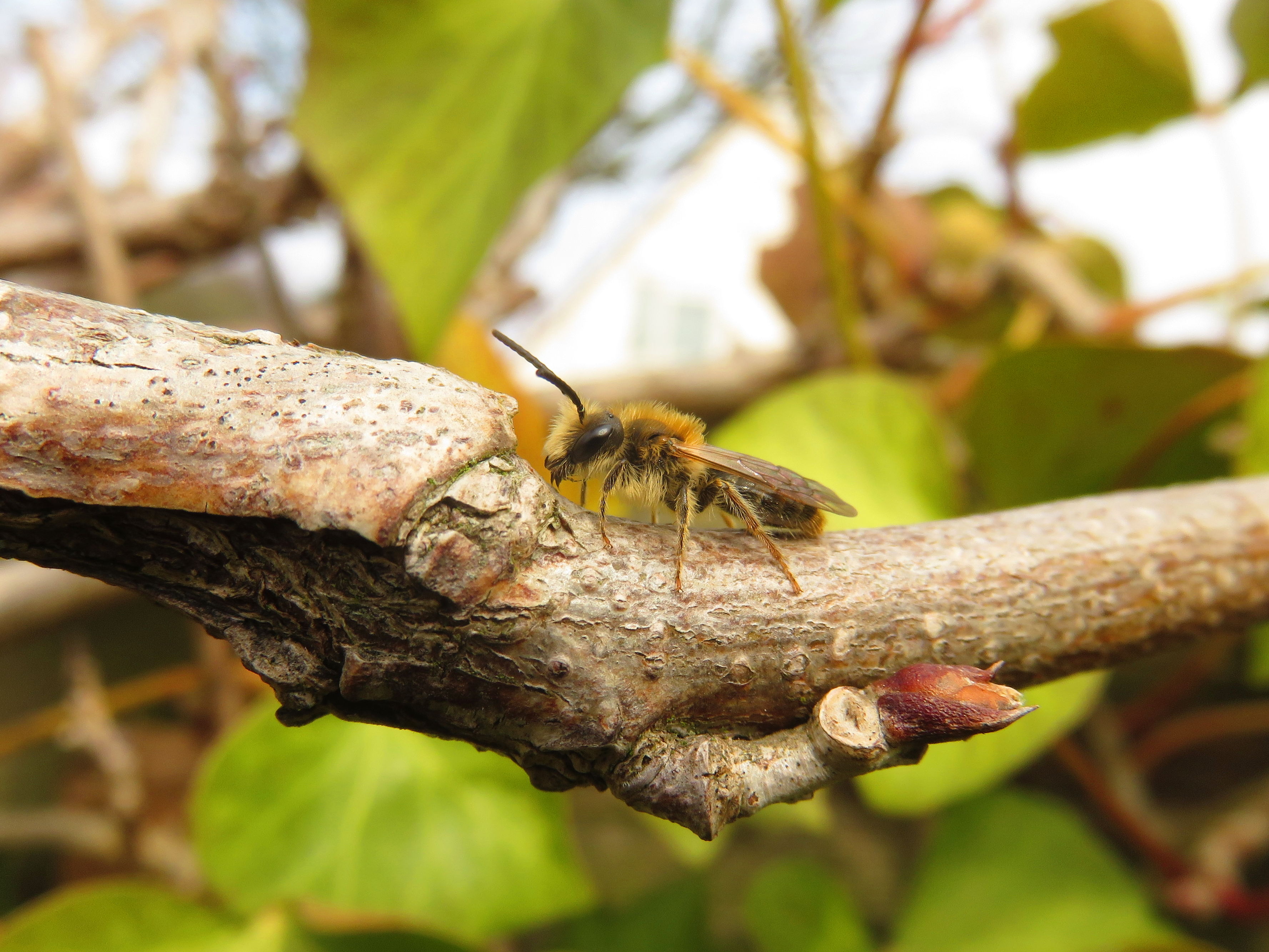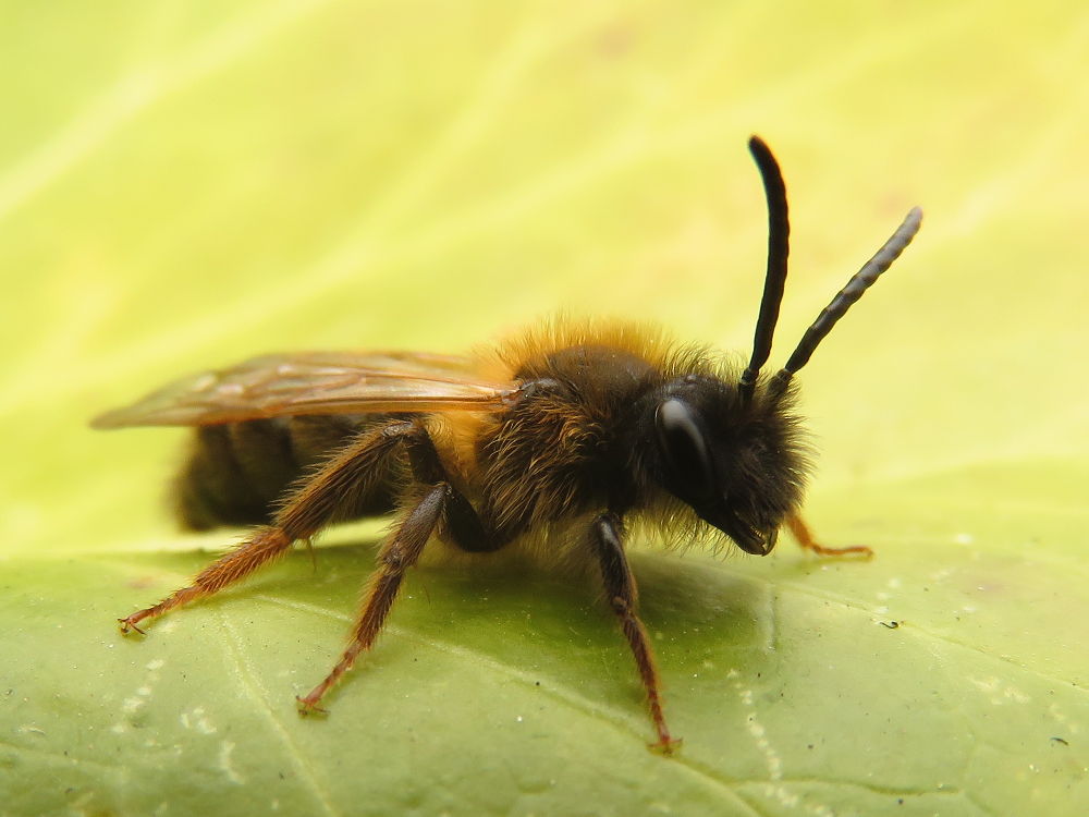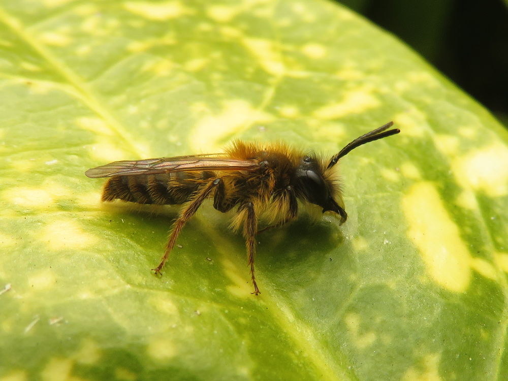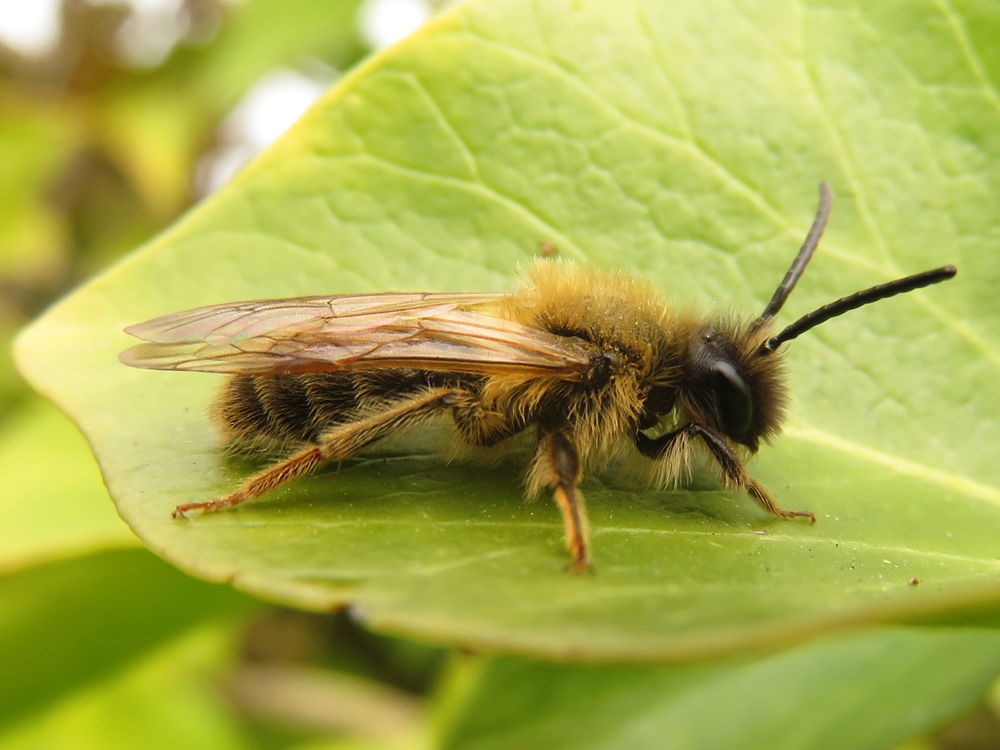 April is de maand van de zandbijen. Als eerste komen de zandbij mannetjes tevoorschijn. Je ziet ze druk heen en weer vliegen rond de struiken in de hoop een vrouwtje tegen te komen. De mannetjes zijn kleiner dan de vrouwtjes en zijn meestal ook wat minder behaard. Het is vaak lastig de juiste soort te herkennen.